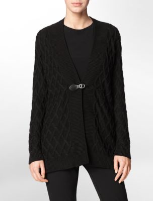 calvin klein womens cable knit buckle close long cardigan eBay